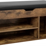 Banc à chaussures en bois de style loft combine un design élégant avec un espace de rangement pratique et une surface d'assise. Idéal pour les halls, vestiaires et entrées.