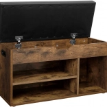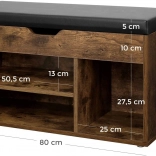 Le banc est équipé de trois étagères - deux larges (50,5x13 cm), une plus étroite (25x27,5 cm) et un espace supplémentaire sous le siège (80x30 cm). Le style loft moderne ajoute du chic à l'intérieur.