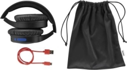 Le design noir moderne est rehaussé de coussinets bleus, pour un look unique et un confort optimal. Les accessoires comprennent un câble de charge USB rouge et une pochette de transport noire, pratiques pour vos déplacements.