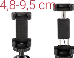 Fixation sécurisée du smartphone : Le support est équipé d’inserts en mousse souple qui protègent votre smartphone des rayures et offrent une prise ferme et stable. Compatible avec les téléphones d’une largeur de 4,8 cm à 9,5 cm.