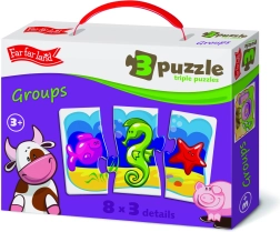 Les ensembles Far Far Land puzzle trio offrent un univers incroyable rempli d’images colorées. Chaque ensemble contient 8 images uniques, chacune composée de 3 pièces. Ces puzzles stimulent non seulement la créativité des enfants, mais aussi leur capacité à associer et distinguer différents objets.