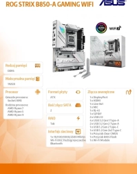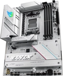 La ROG Strix B850-A Gaming WiFi au design blanc élégant fait passer votre PC au niveau supérieur. Prête pour les processeurs AMD Ryzen série 9000, elle apporte une bande passante de pointe grâce au PCIe 5.0, des fréquences mémoire élevées avec la DDR5 et une connectivité ultra‑rapide via USB 20 Gb/s et Wi‑Fi 7. Le tout dans une conception robuste avec des slots renforcés et un refroidissement efficace.