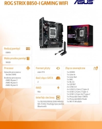 La ROG STRIX B850-I GAMING WIFI réunit les technologies les plus récentes dans un format mini‑ITX minimaliste. Grâce à la prise en charge du PCIe 5.0 pour les cartes graphiques et le stockage NVMe, à la mémoire DDR5 rapide et à des étages d’alimentation performants, vous obtenez une plateforme prête pour les jeux modernes, la création de contenu et les charges de travail IA.