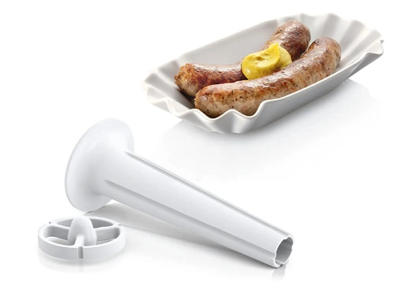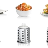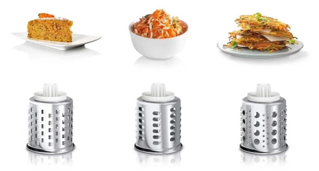 Des tambours pratiques pour couper et râper, y compris un tambour pour galettes de pommes de terre, et un accessoire de remplissage pour saucisses élargissent les possibilités: des salades aux spécialités maison.