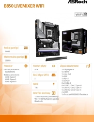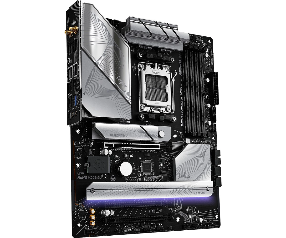 L’équipement équilibré comprend des interfaces modernes USB 3.2, des stockages M.2 rapides et une connectivité sans fil Wi‑Fi, pour connecter facilement périphériques, disques externes, caméras et interfaces audio. La B850 LiveMixer WiFi constitue ainsi une base fiable pour un PC performant dédié à la création de contenu et au jeu.