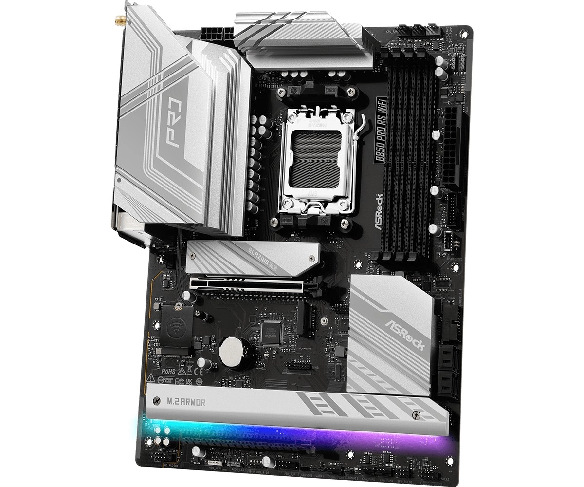 La carte mère ASRock B650 Pro RS WiFi combine un équipement moderne avec un refroidissement étudié et une grande stabilité. Le PCB 8 couches garantit une transmission de signal propre, un échauffement réduit et une fiabilité durable. La prise en charge de la mémoire DDR5 avec profils Intel XMP / AMD EXPO facilite l’atteinte de fréquences plus élevées sans réglages complexes.