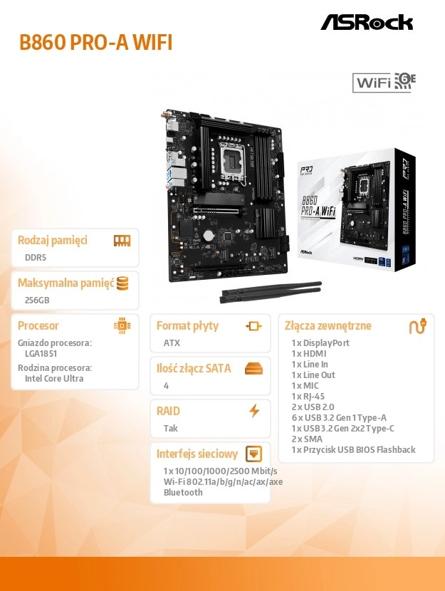 L’ASRock B860 Pro-A WiFi est conçue pour la stabilité, la fiabilité et la longévité. Grâce à une conception d’alimentation de qualité et à la prise en charge des dernières mémoires DDR5, vous exploitez facilement plus de performances via les profils Intel XMP / AMD EXPO sans complications inutiles.