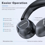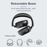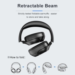 Grâce à sa conception pliable, vous le rangez facilement dans un sac et gagnez de la place sur le bureau. Le microphone intégré et les commandes intuitives de musique et volume permettent de prendre des appels et de gérer la lecture sans sortir le téléphone. Si la batterie est vide ou pour une latence nulle, utilisez simplement le câble AUX pour continuer l’écoute.