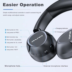 Profitez d’une écoute de qualité sans compromis. Le casque AWEI A770BL offre un son stéréo riche en détails et une connexion sans fil fiable via Bluetooth. Son similicuir doux au niveau des coussinets s’adapte agréablement, idéal pour les sessions prolongées à la maison, au bureau ou en déplacement.