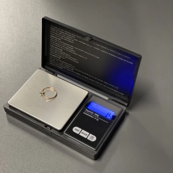 La balance permet des mesures dans sept unités différentes et, grâce à sa précision de 0,1 g, elle est idéale pour peser des bijoux et d’autres petits objets.