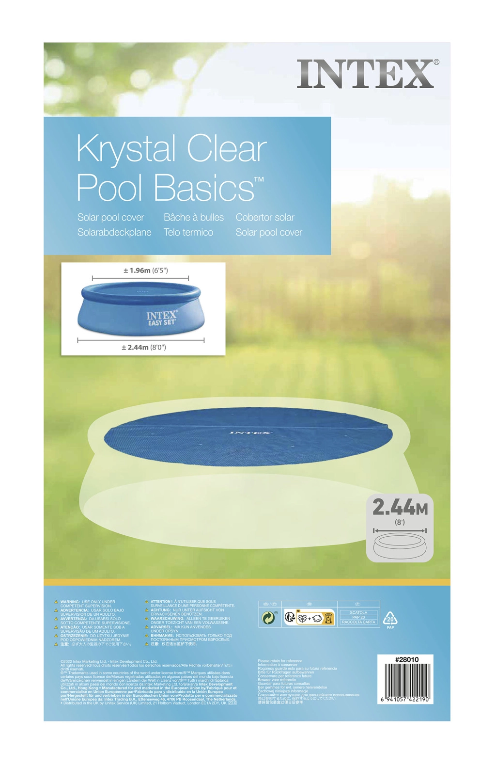 La bâche solaire INTEX est l’accessoire idéal pour prolonger la saison de baignade. Le film à bulles d’air laisse passer les rayons du soleil dans l’eau et aide à la réchauffer naturellement. Il crée en même temps une barrière isolante qui réduit le refroidissement nocturne.