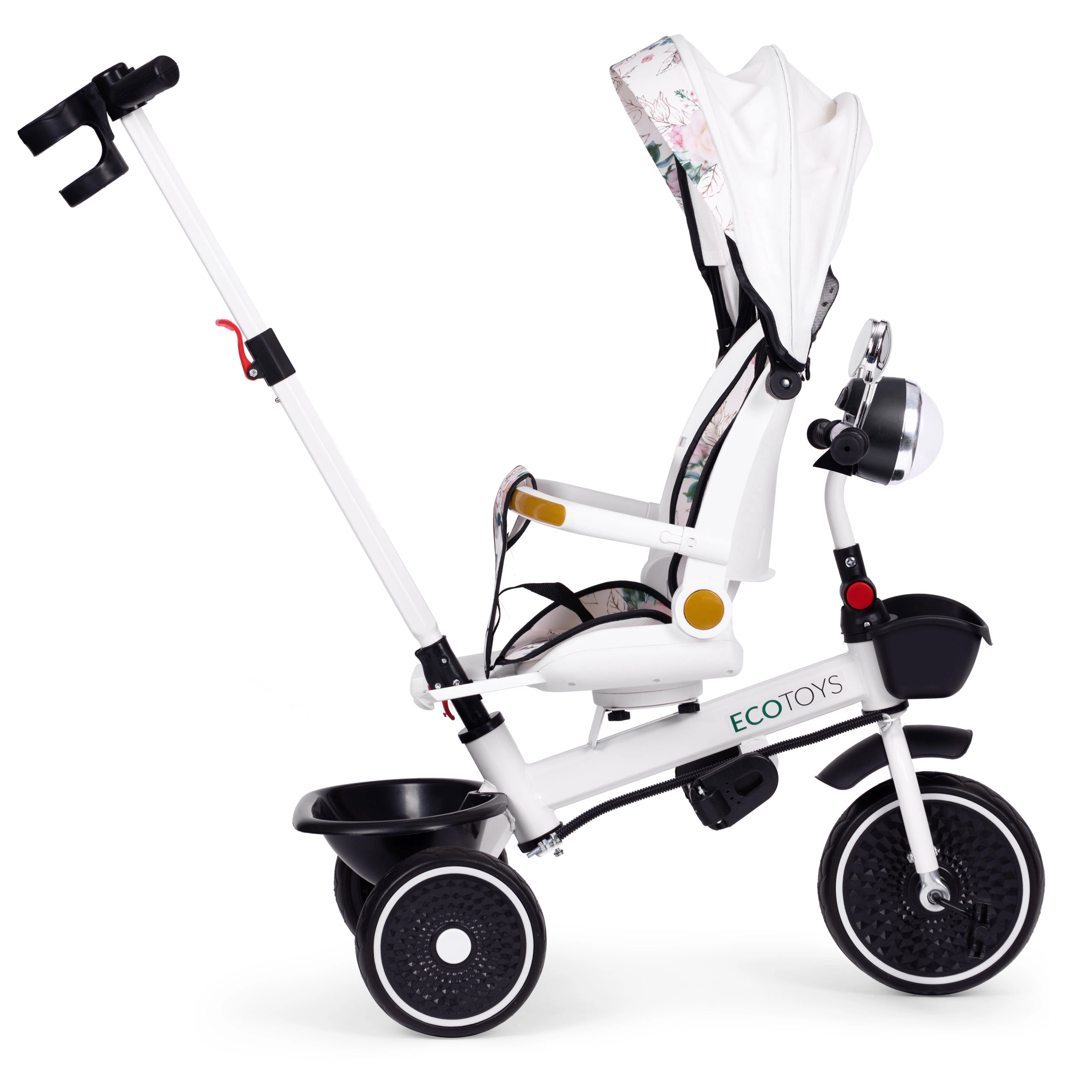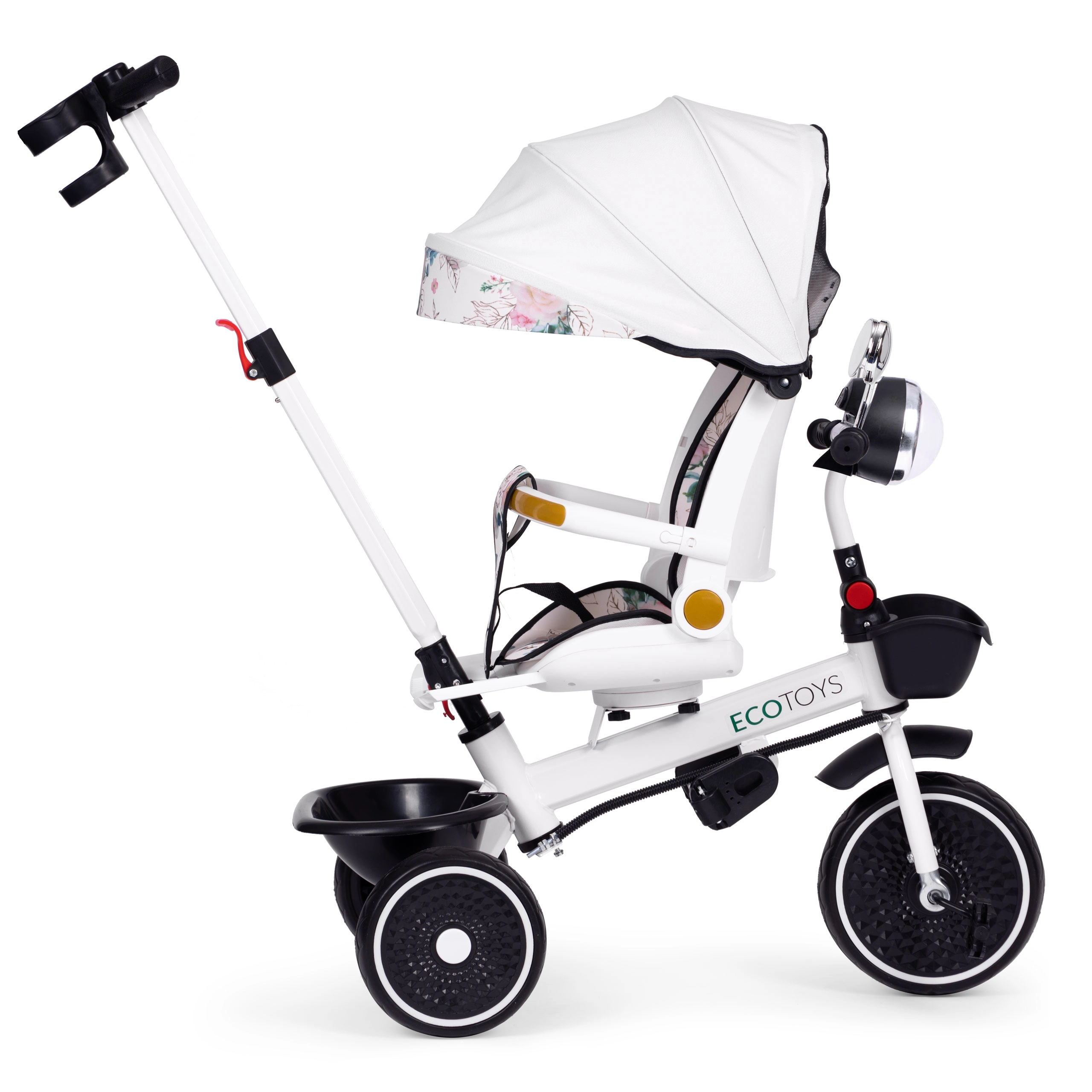 Tricycle pour enfants avec siège pivotant, barre de guidage et auvent ECOTOYS