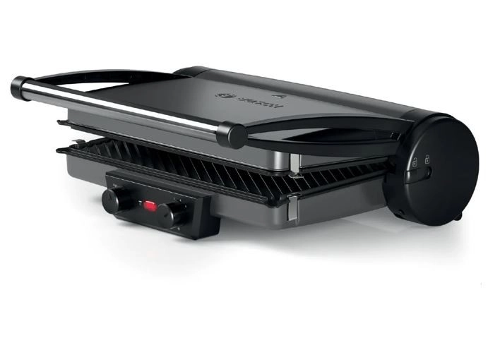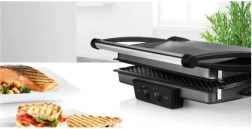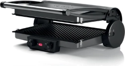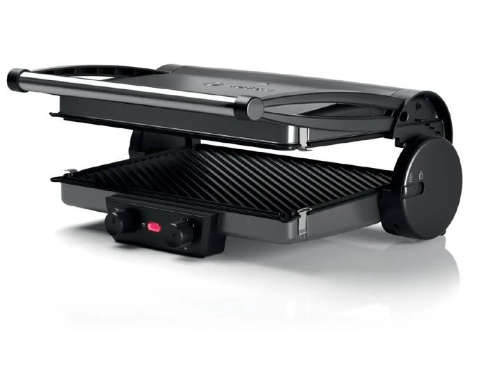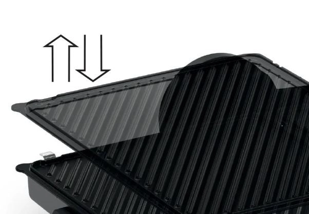 Cuisine saine, rapide et savoureuse – les trois modes de grillade offrent des possibilités pratiquement illimitées pour tester vos idées créatives. Position fermée comme gril de contact, ouverte comme gril de table, semi-ouverte avec chauffe supérieure et inférieure pour rôtir, gratiner ou réchauffer. Steaks juteux, délicieux hamburgers, brochettes croustillantes dorées, toasts, paninis, sandwichs ou focaccia – profitez de ce que vous aimez. De plus, le gril dispose de plaques réversibles : surface rainurée et surface lisse, particulièrement adaptées à une cuisson pauvre en matières grasses.