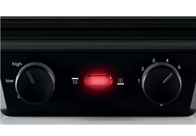 Cuisinez comme un professionnel : des régulateurs de température séparés pour la plaque supérieure et la plaque inférieure garantissent d’excellents résultats à chaque fois – que vous grilliez de la viande, du poisson, des pommes de terre, du pain ou des légumes, chaque aliment est préparé à la température idéale des deux côtés. Par exemple, vous pouvez griller les steaks à la perfection : saisis à l’extérieur et encore rosés à l’intérieur. Rapide, simple, facile.