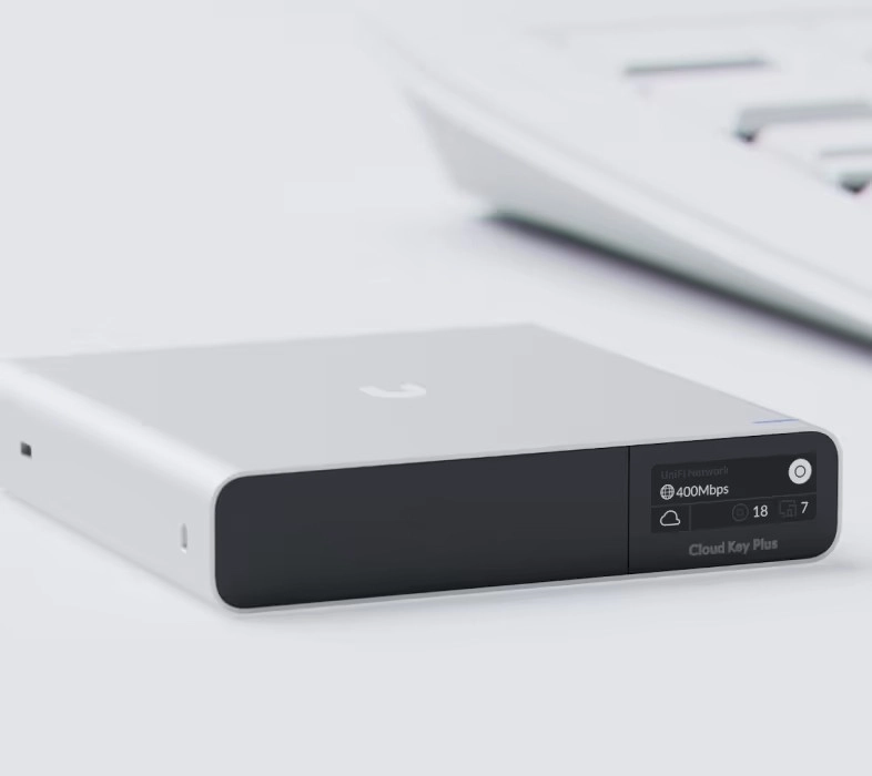 UniFi Cloud Key Plus est un contrôleur performant mais compact, qui se connecte directement au service Site Manager sur unifi.ui pour une gestion efficace d’un ou plusieurs sites. Grâce au SSD 1 To intégré, il conserve en toute sécurité sauvegardes, journaux et configurations, assurant le fonctionnement fluide de toute l’infrastructure UniFi.