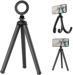 Le trépied offre un réglage complet de l’angle, vous permettant d’adapter la position du téléphone à vos besoins. Il est également léger et portable, ce qui facilite son transport et en fait un compagnon idéal pour tous types de voyages. De plus, grâce au filetage universel 1/4'', le trépied peut être utilisé avec d’autres accessoires, tels que des caméras sportives ou des lampes.