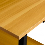 Le plateau et les étagères sont en panneau MDF revêtu de stratifié, contribuant à une allure élégante et à une bonne résistance à l’usage quotidien. Les pieds sont munis d’embouts de protection pour préserver le sol des dommages.