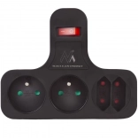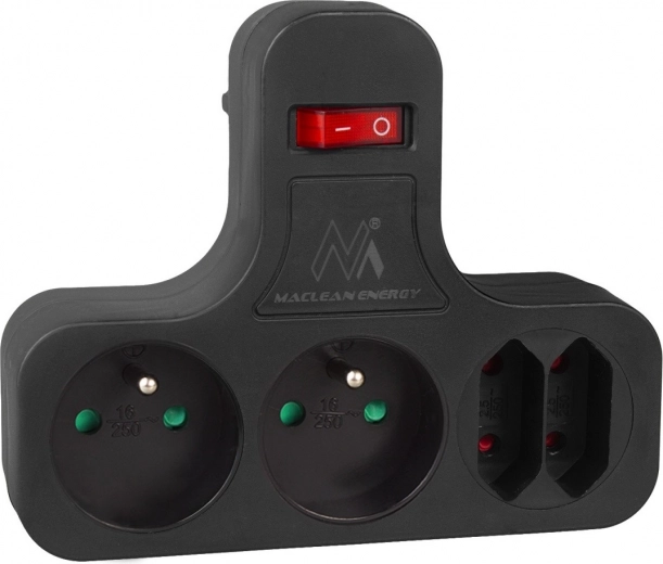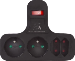 La multiprise Maclean Energy assure une utilisation sûre et efficace des appareils électriques. Grâce à ses quatre prises (2 plates et 2 de type Schuko), vous pouvez connecter plusieurs appareils simultanément et les contrôler facilement avec un seul interrupteur.