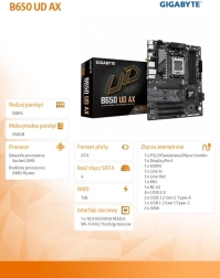 La carte mère GIGABYTE B650 UD AX pour socket AM5 offre une alimentation stable, la prise en charge des AMD Ryzen 7000/8000/9000, une mémoire DDR5 rapide et un stockage fulgurant M.2 PCIe 5.0/4.0. Elle propose également le Wi‑Fi 6, le GbE LAN, une connectivité moderne HDMI/DP et USB 10 Gb/s ainsi que des fonctions pratiques comme EZ‑Latch, Q‑Flash Plus et Smart Fan 6 pour un assemblage aisé et un fonctionnement fiable.