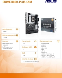 Assemblez un PC moderne sur la plateforme Intel avec la carte Asus Prime B860-PLUS-CSM. Le jeu de composants Intel B860 garantit un fonctionnement fiable et une utilisation efficace du matériel, tandis que le socket LGA1851 ouvre la voie aux derniers processeurs Intel Core Ultra.