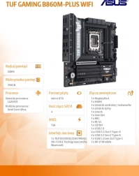 L’ASUS TUF GAMING B860M‑PLUS WIFI s’appuie sur le chipset Intel B860 et offre une alimentation robuste, un refroidissement de qualité et une longue durée de vie. Grâce à la prise en charge de la mémoire DDR5 jusqu’à 8800 MHz et à une capacité maximale de 256 Go, elle garantit une exécution fluide des jeux exigeants, du multitâche et des applications créatives.