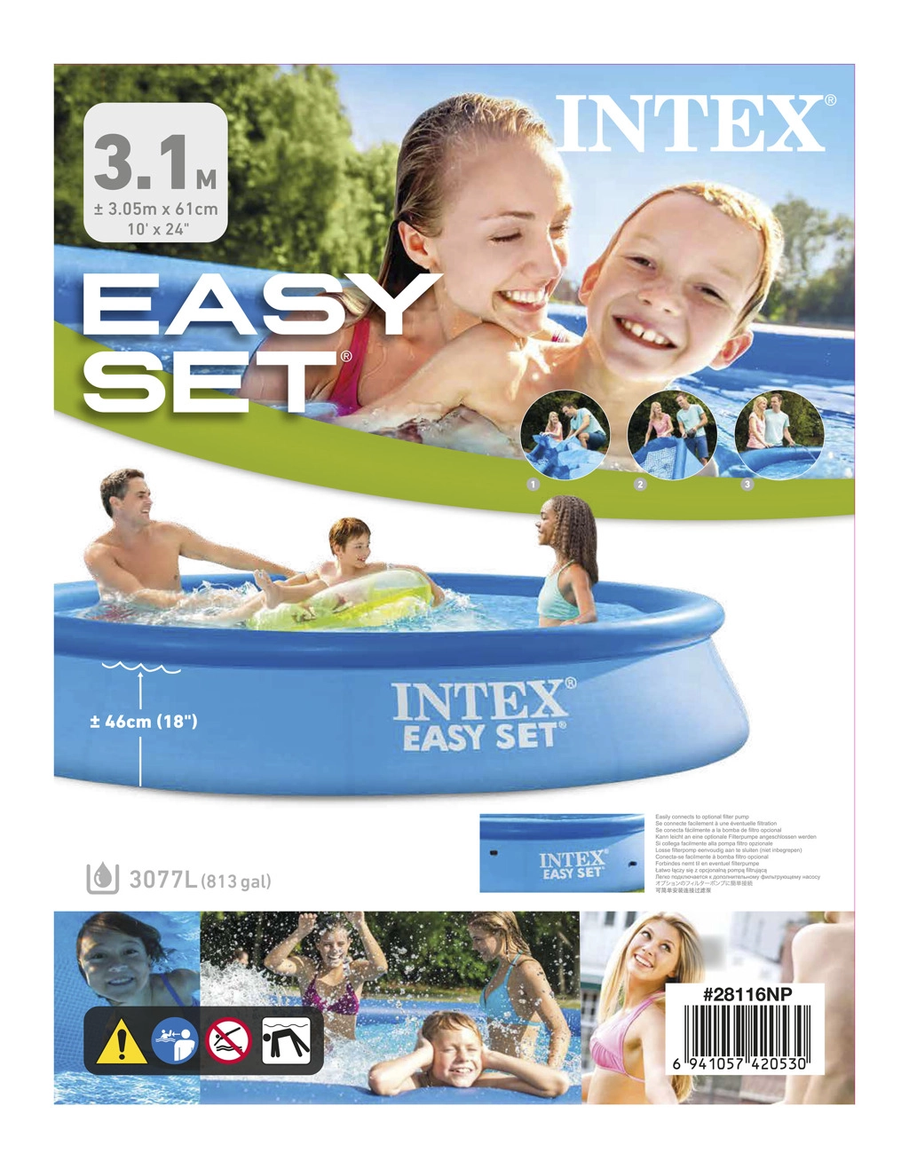 Profitez pleinement de l'été avec la piscine gonflable INTEX Easy Set aux dimensions 305 × 61 cm. Montage facile en quelques minutes – il suffit de déplier la bâche, gonfler l’anneau supérieur et remplir d’eau. La structure en PVC triple couche renforcée d’un maillage assure une longue durée de vie et une baignade en toute sécurité pour toute la famille.