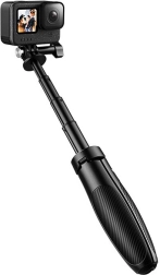 Grâce à la construction télescopique, réglez facilement la longueur de 15 à 40 cm – idéal pour les plans grand‑angle comme pour les selfies détaillés. D’un seul geste, passez de la perche au trépied et obtenez une base stable pour filmer, réaliser des timelapses ou des photos de groupe.