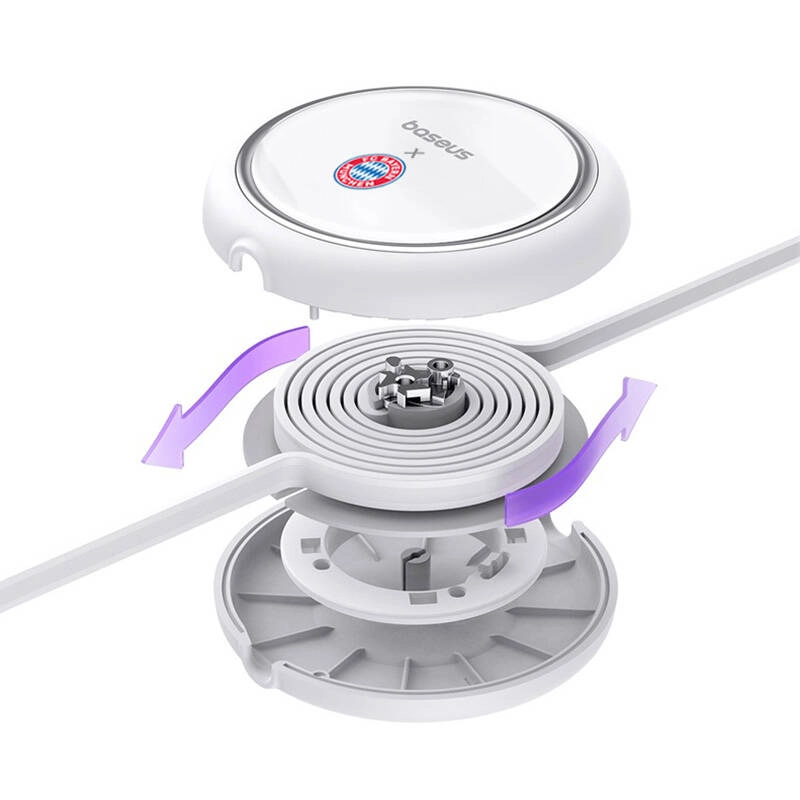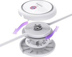Le mécanisme intégré assure une extension et une rétraction fluides, un courant stable et une longue durée de vie. Sa construction légère et compacte réduit l’enchevêtrement des câbles et se glisse idéalement dans un sac ou une poche. L’édition spéciale avec le logo FC Bayern München ravira tous les fans grâce à son design moderne et épuré.