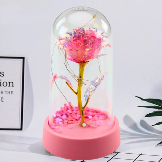 La rose en cristal sous cloche avec éclairage LED est un cadeau élégant et symbolique qui exprime les sentiments les plus profonds et apporte un caractère exceptionnel à tout intérieur. Grâce à son éclairage LED doux et aux petits cœurs flottants à l’intérieur de la cloche, elle crée une atmosphère magique, idéale pour les occasions romantiques.