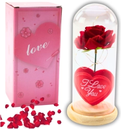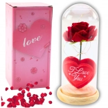 La rose éternelle sous cloche transparente est une décoration raffinée et une déclaration symbolique. La lumière LED blanc chaud met en valeur la beauté de la fleur au rendu réaliste et illumine tout intérieur. La base en bois apporte une touche naturelle et de la stabilité, tandis que la cloche protège de la poussière.