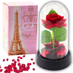 La rose éternelle sous cloche avec éclairage LED est un cadeau élégant et symbolique qui exprime les sentiments les plus profonds et apporte un caractère exceptionnel à tout intérieur. Grâce à sa douce lumière LED et à ses pétales, elle crée une atmosphère magique, idéale pour les occasions romantiques.