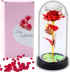 La rose éternelle sous dôme en verre avec éclairage LED est un cadeau élégant et symbolique. Elle symbolise l'amour et les sentiments qui ne s'éteignent jamais. La rose conserve sa beauté pour toujours, sans nécessiter d'entretien. La délicate lumière LED met en valeur la beauté de la rose et crée une atmosphère chaleureuse, idéale pour la décoration ou des moments romantiques. Le dôme en verre élégant protège la rose et permet d'apprécier son charme sous tous les angles. Une base en plastique robuste et stable garantit la sécurité et l'esthétique du cadeau.