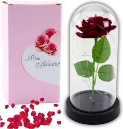La rose éternelle sous cloche avec éclairage LED est une décoration luxueuse qui ne fane jamais. Symbole d’amour et d’émotions, elle ne nécessite aucun entretien.
