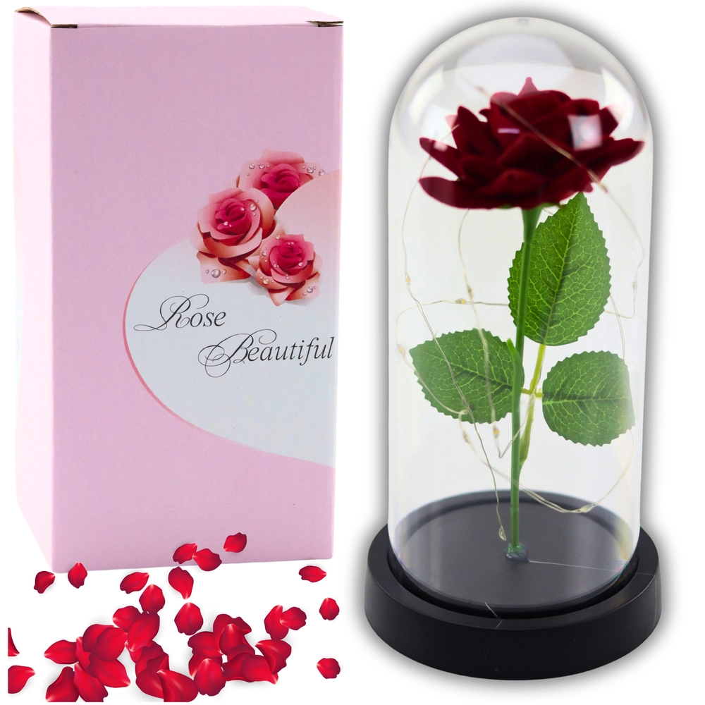 - Éclairage LED – Une lumière douce qui met en valeur la beauté de la rose et crée une ambiance chaleureuse.