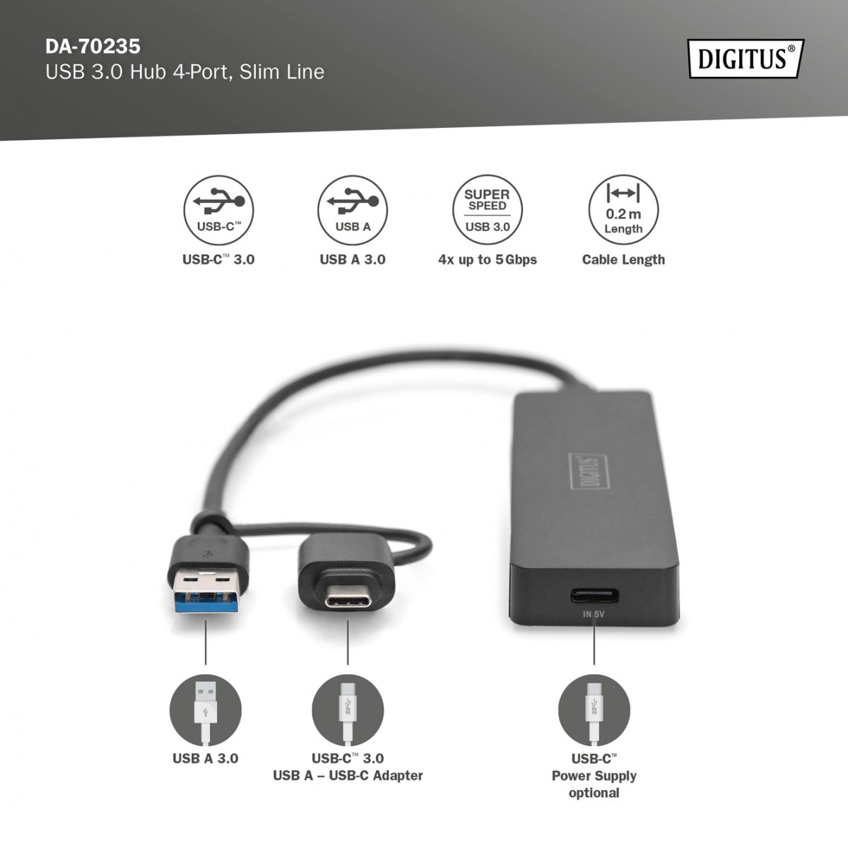 Le hub USB 3.0 Slim Line de DIGITUS est la solution idéale pour étendre la connectivité sur tout poste de travail. Ce hub permet de connecter jusqu’à quatre périphériques USB et de les utiliser simultanément. Il facilite l’utilisation de plusieurs appareils pour le contrôle ou le stockage de données. Grâce à la technologie USB 3.0, le transfert de données peut atteindre jusqu’à 5 Gbit/s, garantissant des échanges rapides. Avec son design fin, ce hub 4 ports est un compagnon idéal en déplacement, mais aussi indispensable à la maison et au bureau.