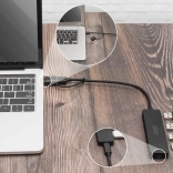 - Connecteur USB-C intégré pour l’alimentation du hub (câble/Adaptateur de charge non inclus).