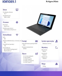 La tablette 2‑en‑1 Krüger&Matz EDGE 1089 est conçue pour offrir une flexibilité maximale à l’utilisateur qui a besoin de combiner tablette et ordinateur portable dans un seul appareil compact. Grâce au clavier détachable, vous passez facilement d’un mode de travail à l’autre.