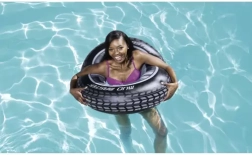 La bouée a l'apparence fidèle d'un pneu de voiture qui attire les enfants comme les adultes et ajoute un élément ludique à chaque piscine.