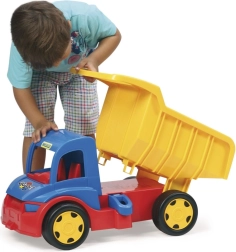 Camion Benne Géant pour Enfants 55 cm est un grand camion de 55 cm que les enfants adoreront pour charger, décharger et transporter leurs jouets préférés. Équipé d'une poignée à l'avant et à l'arrière pour attacher un chariot ou une corde. La benne articulée avec une poignée confortable permet une manipulation aisée et une diversité infinie de jeux. Avec une capacité de charge jusqu'à 150 kg, le camion benne est idéal même pour servir de trotteur - les plus petits peuvent s'assoir sur le jouet et se pousser avec leurs pieds. Sa construction robuste garantit une durabilité pour jouer aussi bien à l'extérieur qu'à l'intérieur.