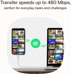 Grâce à la technologie USB Power Delivery (PD), ce câble offre une charge ultra-rapide de vos appareils jusqu’à 100 W. Un débit de transfert jusqu’à 480 Mb/s garantit un transfert de données efficace, sans délais inutiles.