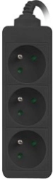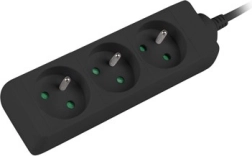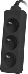 Rallonge électrique 1,5 m, noire, 3 prises avec câble en cuivre