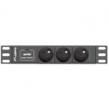 Cette PDU 10" pour rack de LANBERG est conçue pour un montage horizontal 1U et assure une distribution d’alimentation sûre dans les installations professionnelles. Elle propose trois prises françaises (NF C 61-314), une entrée monophasée, un châssis en aluminium robuste et un disjoncteur automatique avec LED pour un diagnostic rapide.