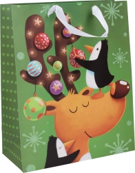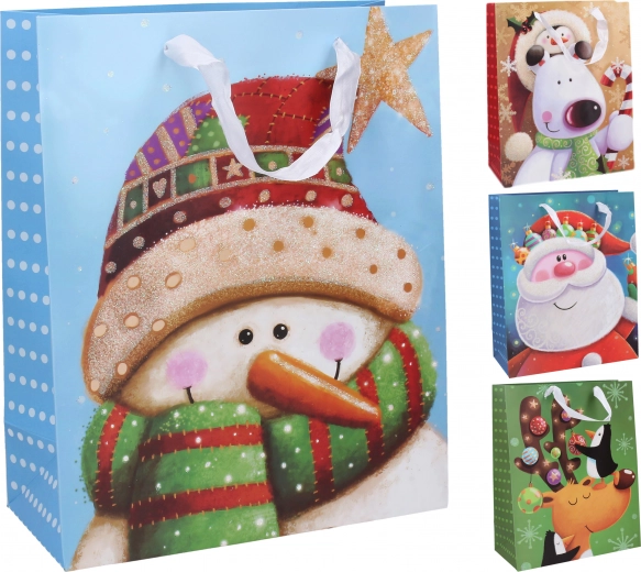 Superbe sac cadeau de Noël de taille moyenne, dimensions 32×26×12 cm, pour emballer vos cadeaux en toute simplicité. Choisissez parmi 4 motifs différents pour un look unique.