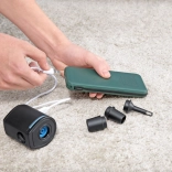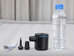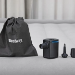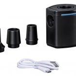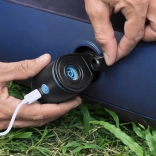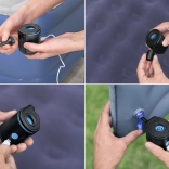 Grâce à son débit de 90 l/min, la pompe assure un gonflage et un dégonflage rapides. L’utilisation est intuitive – un seul bouton suffit. Avec trois embouts, elle s’adapte à la plupart des valves courantes des matelas gonflables, bouées, transats ou tapis de camping.