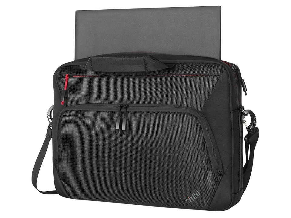 La sacoche pour ordinateur portable THINKPAD Essential Plus 15,6″ (éco) est conçue pour transporter votre matériel au travail, à l’école et en voyage en tout confort et en toute sécurité. Grâce au compartiment rembourré, votre ordinateur reste protégé, tandis que le tissu résistant en nylon balistique et la quincaillerie de qualité supportent sans faille une utilisation intensive.