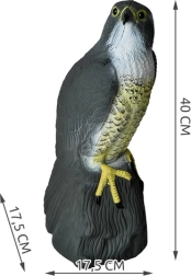 Avec des détails soignés sur le plumage et des couleurs authentiques, le faucon semble vivant et repousse efficacement les visiteurs indésirables.