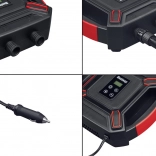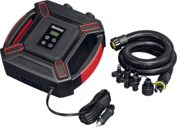 Profitez d’un gonflage sans souci pour votre équipement de camping et de sports nautiques. La pompe haute pression Bestway se branche sur la prise allume-cigare 12 V de la voiture, atteint rapidement la pression requise et s’arrête automatiquement une fois celle-ci atteinte. Le réglage est intuitif grâce à l’écran LCD et aux boutons de sélection des unités PSI/BAR.