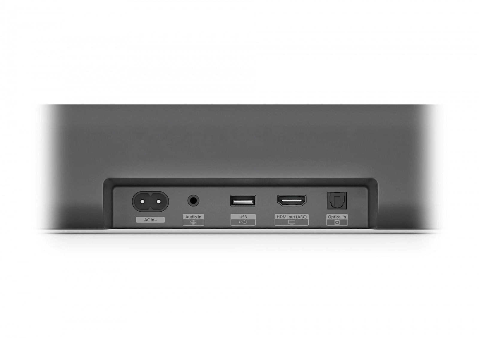 - HDMI (ARC), entrée optique (TOSLINK), USB, entrée audio 3,5 mm (AUX)