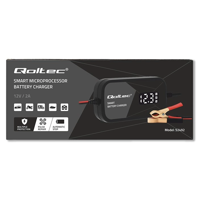 Ce chargeur intelligent 12 V avec courant de 2 A est idéal pour les batteries de 2 à 20 Ah dans les automobiles, motos, bateaux, tondeuses ou quads. Le microprocesseur adapte automatiquement la tension et le courant à l’état de la batterie, empêche la surcharge et passe en mode d’entretien une fois la charge complète. Le grand écran LED/LCD affiche séquentiellement la tension (V), le courant (A) et l’état de charge (%) pour un suivi facile.