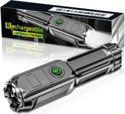 Cette lampe est équipée d'une poignée antidérapante, offrant une prise en main sûre et confortable même lors d'activités outdoor intensives. La recharge USB élimine le besoin de changer les piles, la rendant écologique et économique, avec un indicateur d'état de batterie qui vous avertit lorsqu'une recharge est nécessaire.